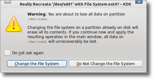 You’ll be asked with every step to verify that you want to do an action, and the KDE Partition Manager provides a step-by-step list of actions for each process, so if something does go wrong you can see where the error happened.