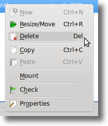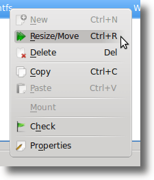 Or maybe you have a large, mostly-empty partition that you want to shrink to make room for another. In this case, you would resize the partition. Simply choose the Resize/Move option from the menu when the partition you want to edit is highlighted.