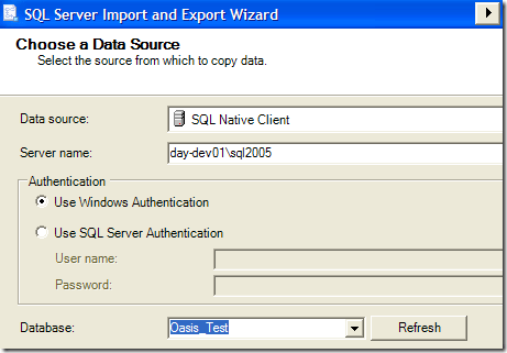 Next, you need to choose the Data Source. If you right-clicked on the database name, then everything should come up automatically.