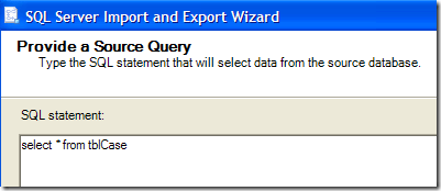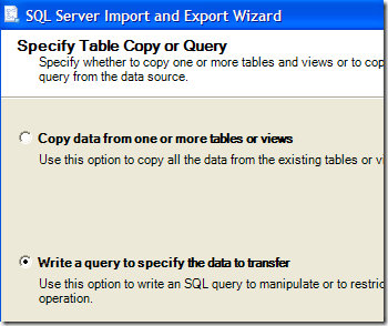 Next, you can either choose to export an entire table/view to Excel or to write your own query. In my case, I will write a specific query for the data that I want to export.