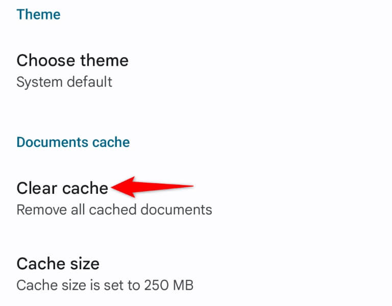 If your issue isn’t resolved, use Drive’s built-in clear cache option to delete the cached documents in the app.