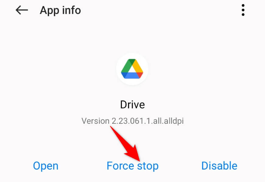- Choose Force stop in the prompt. * Relaunch the Drive app from your app drawer or home screen.