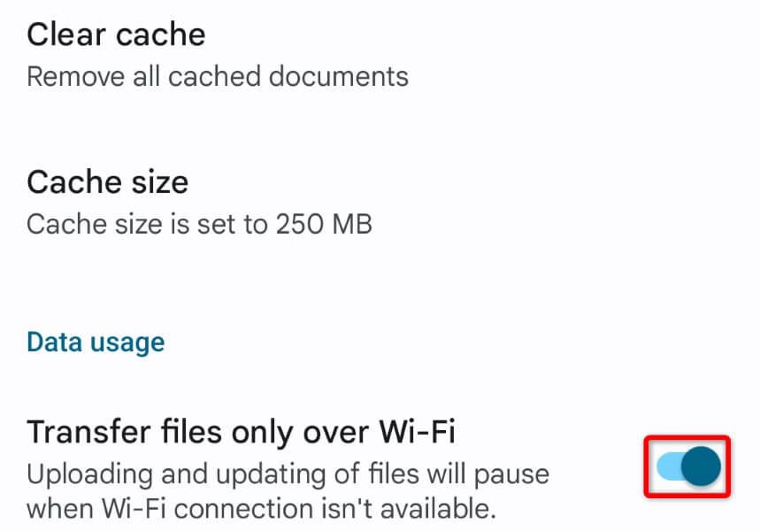 - Turn off Transfer files only over Wi-Fi.