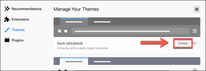 - If you’re using a custom Firefox theme, switch back to the **Default **theme by selecting the **Enable** button in the **Add-ons > Themes** menu. As the default Firefox theme, it offers the least likelihood of causing unnecessary memory usage.