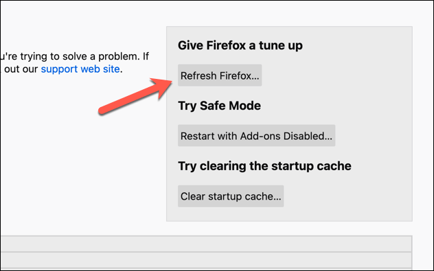 - In the **Troubleshooting Information **menu, select the **Refresh Firefox** option in the top-right corner.