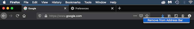 Open Firefox and start a search. Hover over the Pocket icon in the search bar, right-click it, and select **Remove from Address bar. **This gets rid of Pocket.