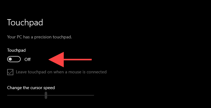 - Turn off the switch under Touchpad to deactivate the touchpad.