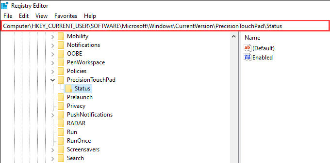 Copy and paste the following path into the Registry Editor’s address bar: HKEY_CURRENT_USERSOFTWAREMicrosoftWindowsCurrentVersionPrecisionTouchPadStatus