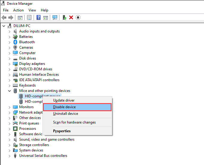 Another way to disable your laptop’s touchpad in Windows 10 is to use the Device Manager applet.
