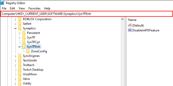 ComputerHKEY_CURRENT_USERSOFTWARESynapticsSynTPEnh