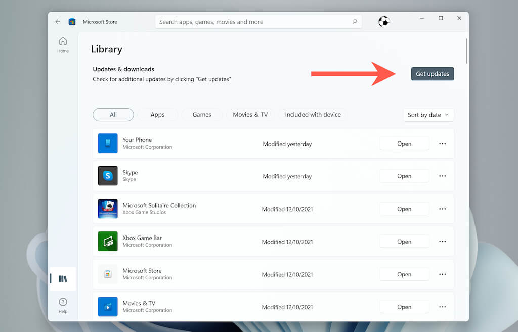 - Select Get updates to update Mail and other Store apps on your computer.