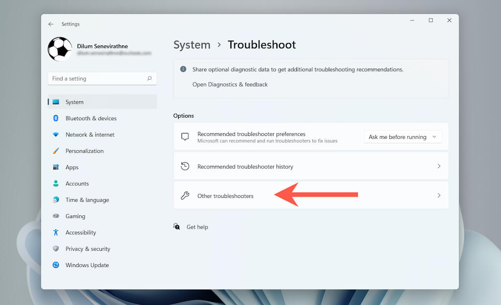 - Select Other troubleshooters (Windows 11) or **Additional troubleshooters **(Windows 10).