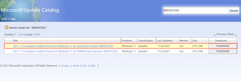 - Visit the Microsoft Update Catalog and search for and download the update. Make sure to pick the file that matches the architecture (32 or 64-bit) of Windows on your PC.