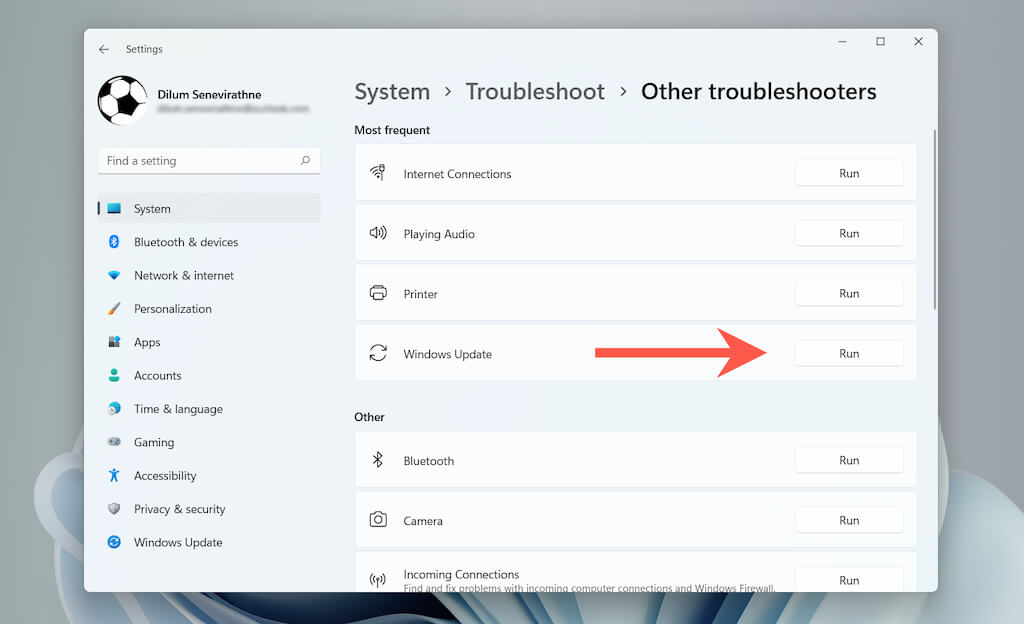Run Windows Update Troubleshooter