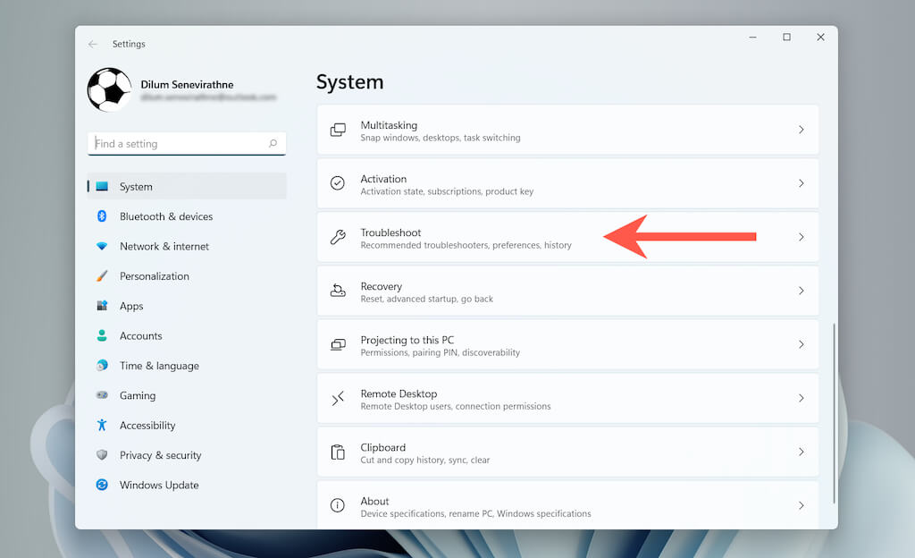 - Select **System **> **Troubleshoot **(Windows 11) or Update & Security > **Troubleshoot **(Windows 10).