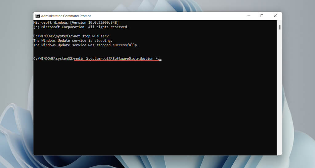 - Run the command below to delete the Software Distribution folder: