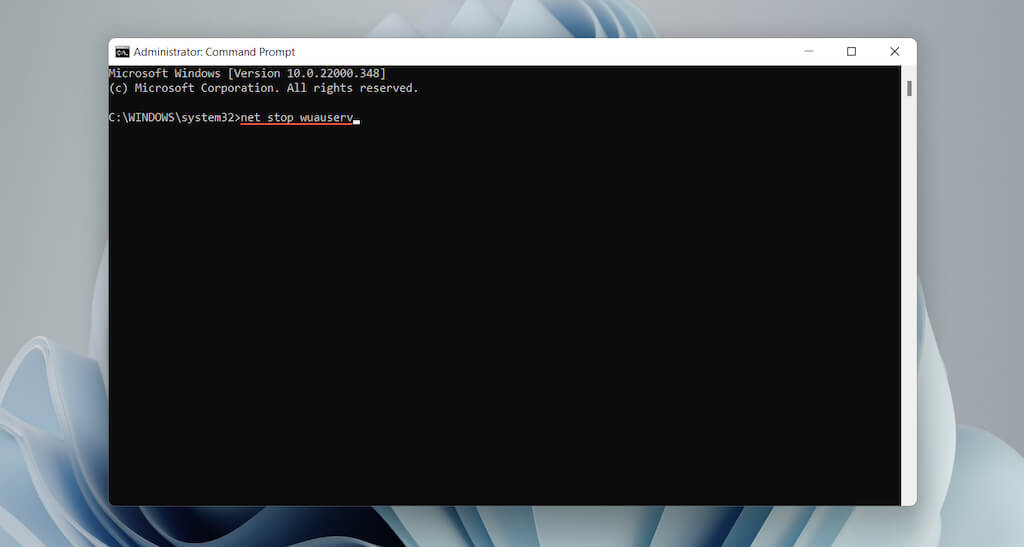 - Paste in the following command and press Enter to disable the Windows Update service: