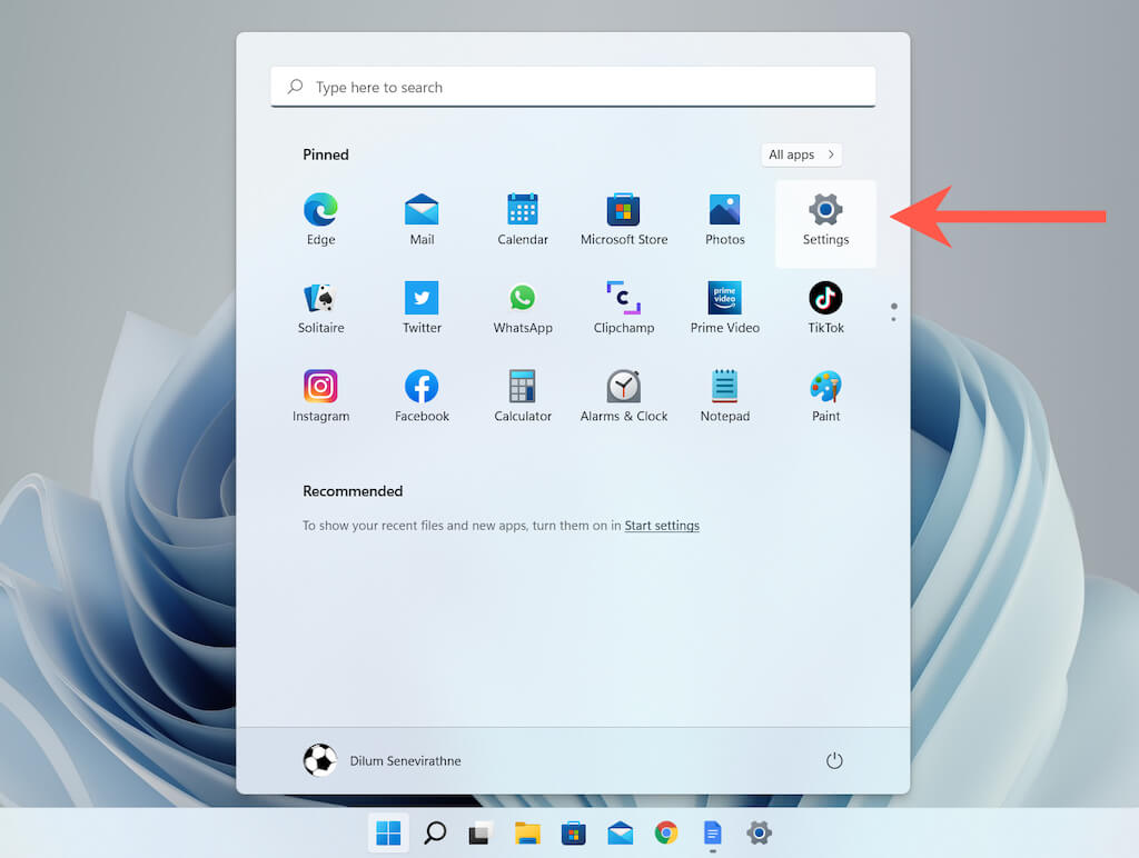 - Open the **Start **menu (or press the **Windows **key) and select Settings.