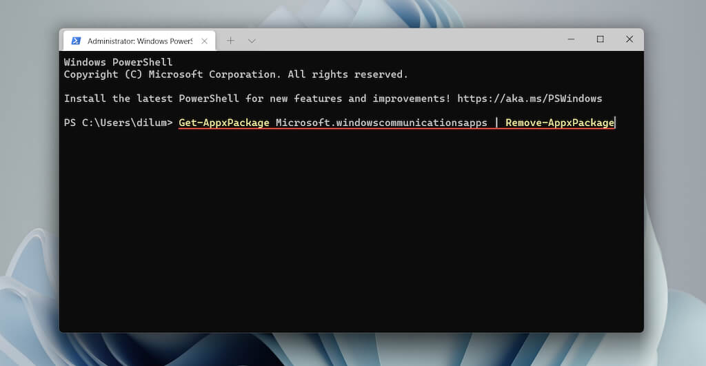 - Paste the command below and run it to uninstall the Mail and Calendar apps: