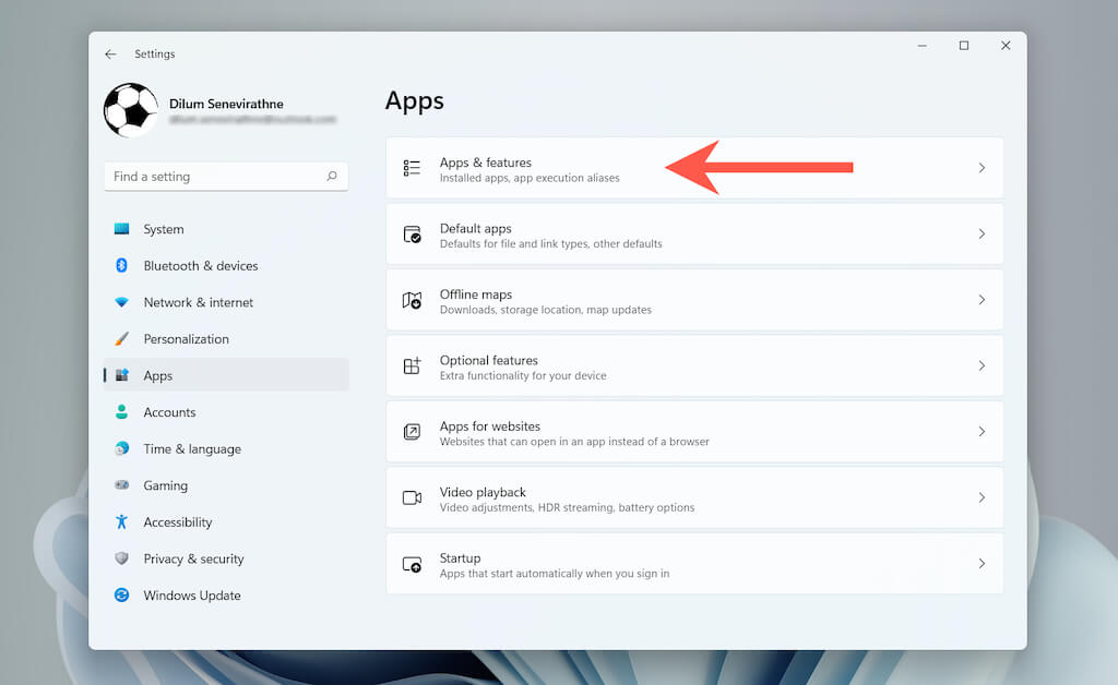Select **Apps **> Apps & features.