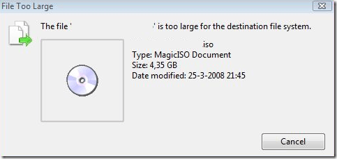 Yesterday, while copying some large files to an external hard drive, I was promptly issued this message by Windows: The file “myfile” is too large for the destination file system.