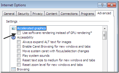 That tends to fix most display issues in IE 9, but if it doesn’t, you can try two other options: turning off Tracking Protection and turning off Hardware Acceleration.