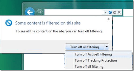 That will show any filtered content, which is usually scripts, etc that run on the website. Note that if you are having issues on sites that run Flash, you can also try to turn off ActiveX Filtering as that may be blocking the Flash from loading properly.