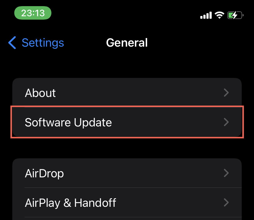 Select General > Software Update.