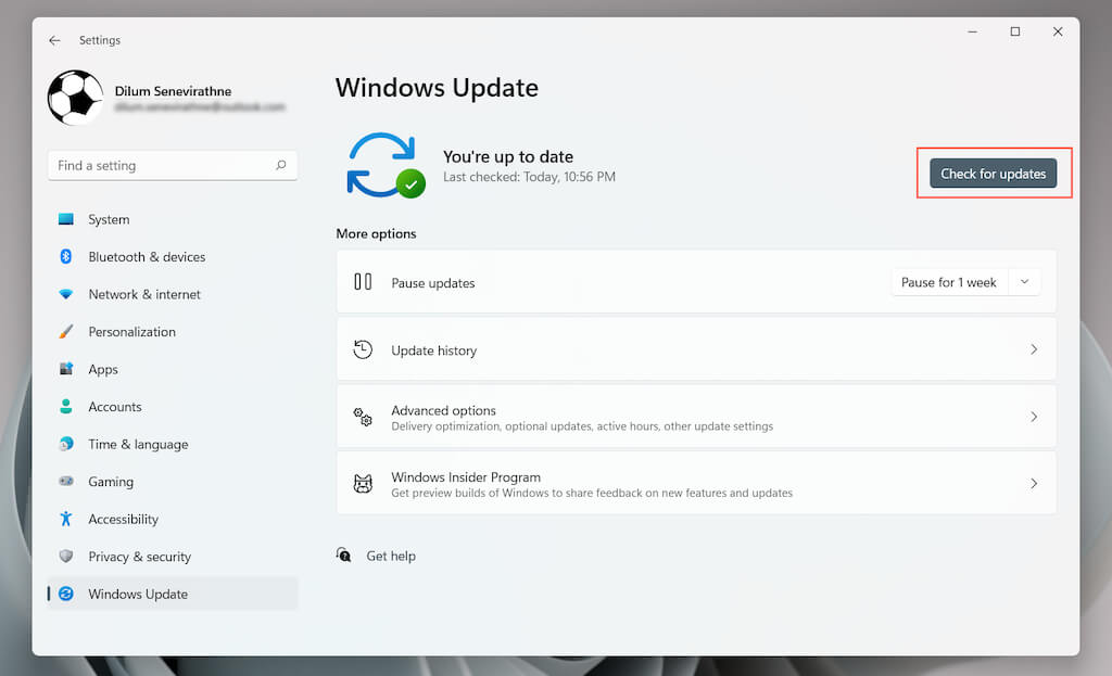 Open the **Start menu **and select **Settings **> Windows Update.