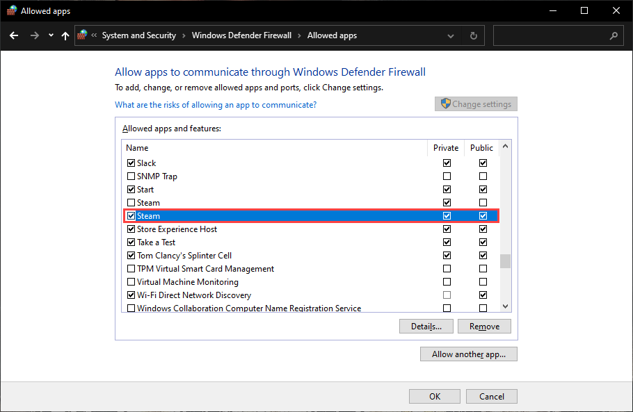 If you can’t locate Steam within the Windows Firewall, select the **Allow another app button **and pick Steam.exe from the following folder: