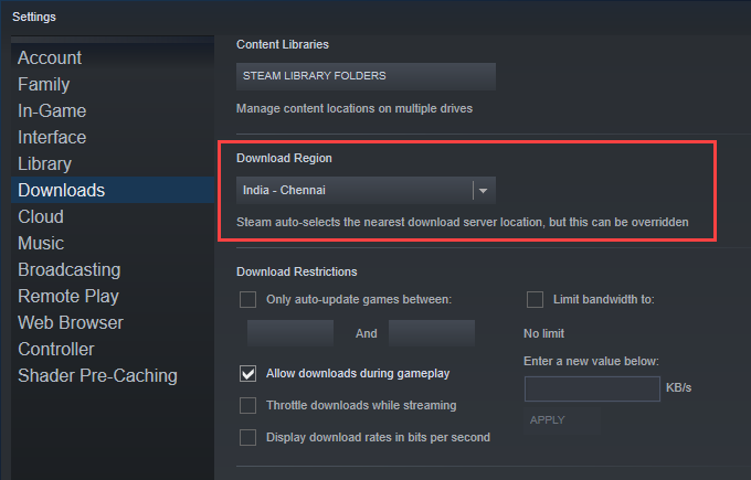 Change Steam’s Download Region