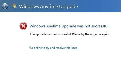 One of my clients ran into a problem when they were trying to upgrade from Windows 7 Home Premium to Professional using the Windows Anytime Upgrade tool. Instead of it working like normal, they ended up getting the following message: Windows Anytime Upgrade was not successful