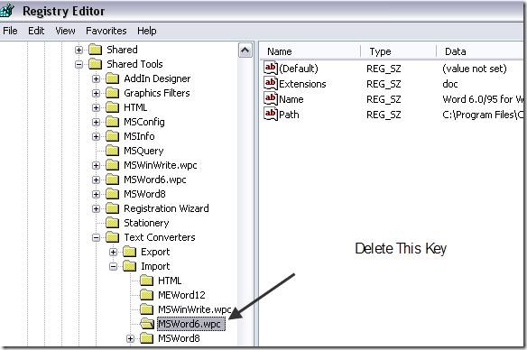Navigate to the following key: HKEY_LOCAL_MACHINE\SOFTWARE\Microsoft\Shared Tools\Text Converters