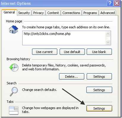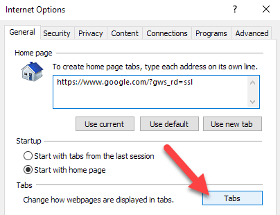 In later versions of IE, you click on the Tabs button under the Tabs section.