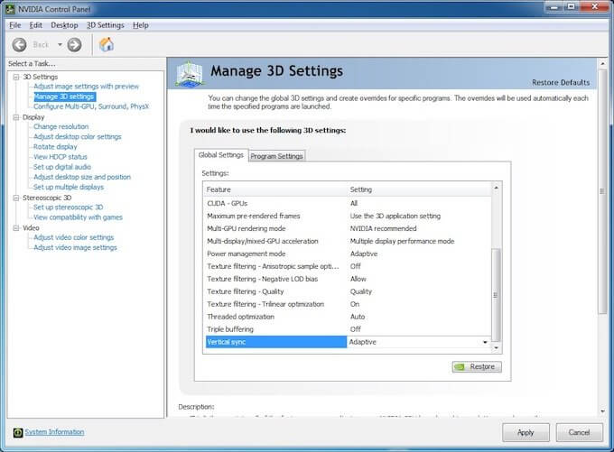These errors often happen because the frame rate delivered by the graphics processing unit (GPU), of a computer and the refresh rate of the monitor do not line up. Adaptive sync is the process by which the refresh rate of the monitor is matched to the frame rate of the GPU.