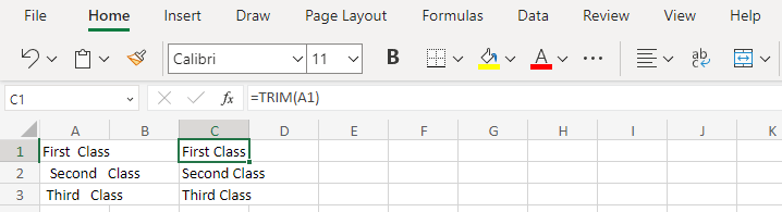 - TRIM – It is quite common to accidentally enter extra spaces in some cells, throwing off the results of some calculations or CONCATENATE operations. The TRIM function can be used to remove all extra spaces, leaving just a single space between every word.