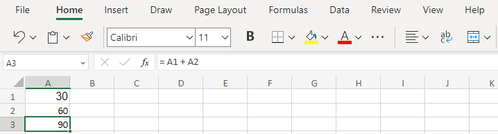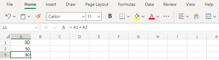 Of course, performing calculations on static numbers like this isn’t particularly useful. To add the numbers contained in a cell, you must use cell references.