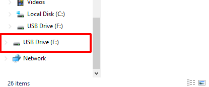 Before you proceed, take note of the drive letter of the affected disk. In this tutorial, we’ll scan the USB Drive labeled F: in the File Explorer.