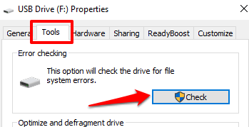 The Check Disk utility is a built-in tool that fixes faulty sectors and corrupted data on internal and external drives. Scan the problematic drive using the utility and check if that resolves the issue.