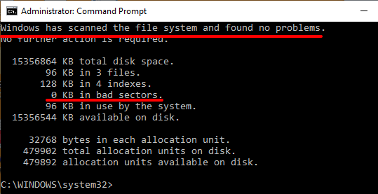 The Check Disk utility will execute the command and scan the drive for errors and bad sectors; this may take a couple of minutes depending on the disk size and files in the disk. After the scan, the Chkdsk tool will let you know if it found a problem or bad sectors.