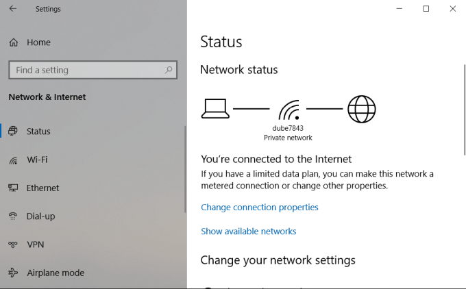 If the status doesn’t say this, you’ll need to work on troubleshooting your internet connection before moving on.