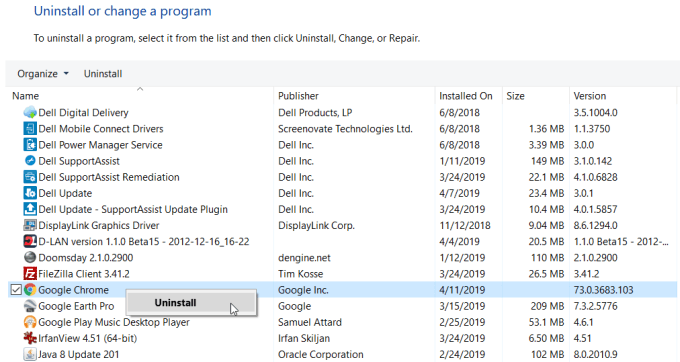 Note: Before doing this, make sure you’ve downloaded a fresh copy of the Chrome installer so you can easily reinstall Chrome.