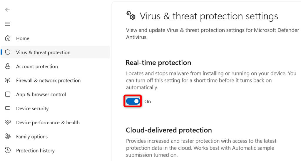If you’re using Microsoft Defender Antivirus, follow the following steps to turn off your virus protection:
