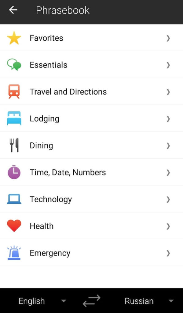 Another handy feature Bing Translate comes with is a Phrasebook. It contains all the essential phrases that you may need to use when navigating your way in a foreign country. This can also be useful if you’re using the app to learn a new language and not just for translations.