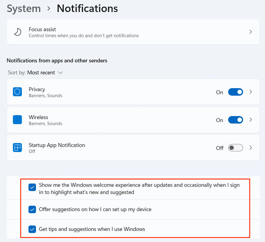 - Taskbar Pop-Ups. You might encounter persistent notifications suggesting Windows 10 tips. To turn these off, go to Settings > System > Notifications & actions and turn off Get tips, tricks, and suggestions as you use Windows. Also, turn off the Show me the Windows welcome experience after updates and when I sign in option.