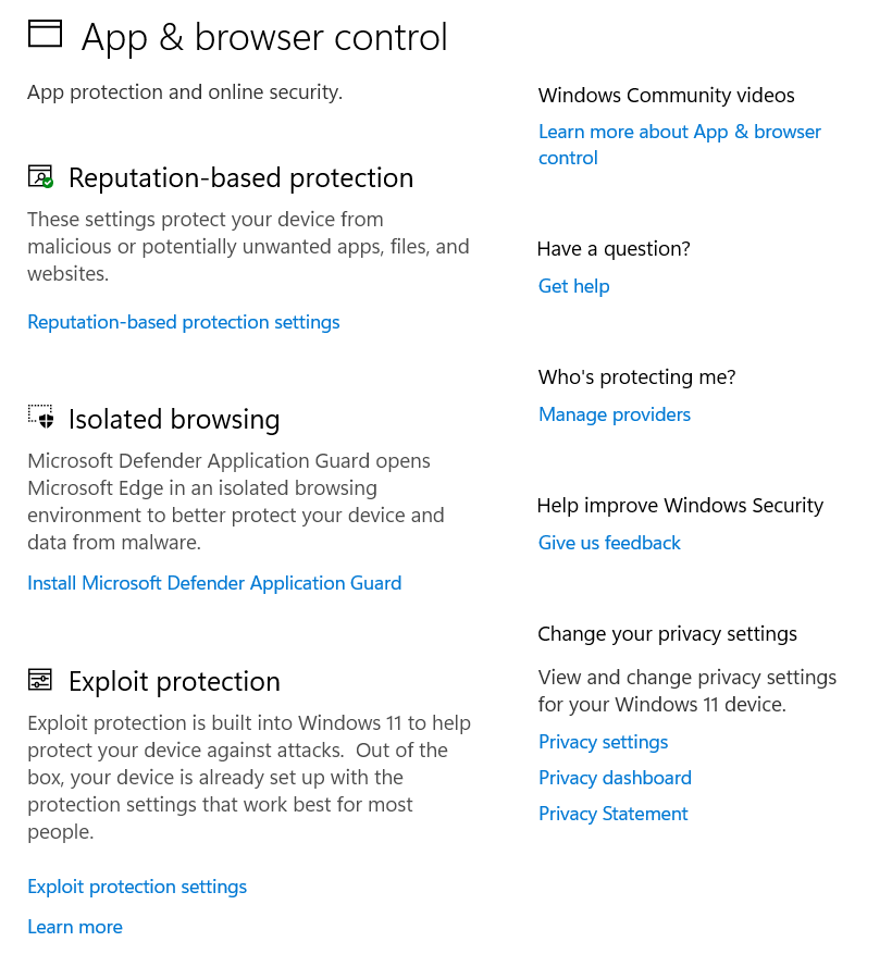 Customize how Windows handles potentially unsafe apps and malicious websites. Configure your Edge browser’s behavior in unsecured environments (like public Wi-Fi) to secure your data. The settings include SmartScreen for Edge, installed apps, files, and exploit protection functions like DEP, ASLR, and SEHOP settings.