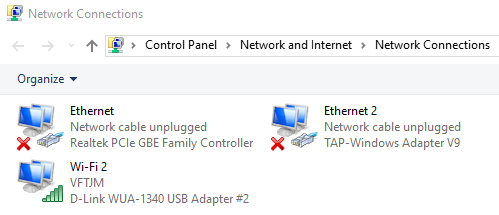 Here you will see a list of all the network adapters on your computer. If you have an Ethernet port and WiFi card, you’ll see both items listed. You might also see other network adapters, but they are usually always virtual, meaning they are created by a software application like a VPN client or virtual machine program.