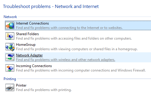 These are not just troubleshooting guides, they are actual programs that run and fix issues with various networking related services. I have found the Internet Connections and** Network Adapter** troubleshooting fixes to be the most useful.