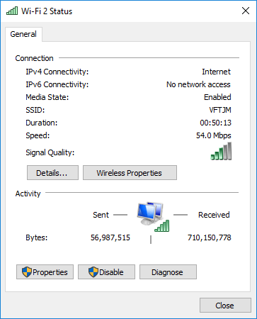 For WiFi networks, this screen is useful because you can click on Wireless Properties and then click on the Security tab and view the WiFi password. This is really useful if you have forgotten the WiFi password, but still have a computer that is connected to the network.