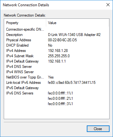 Lastly, if you click on Details, you can get more info about the current network like the Default Gateway (router IP address), MAC address, and computer IP address.